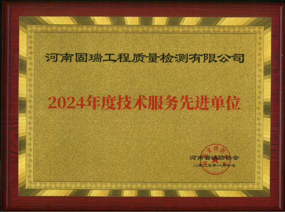 熱烈祝賀河南固瑞工程質量檢測有限公司榮獲河南省消防協會2024年度技術服務先進單位!??!